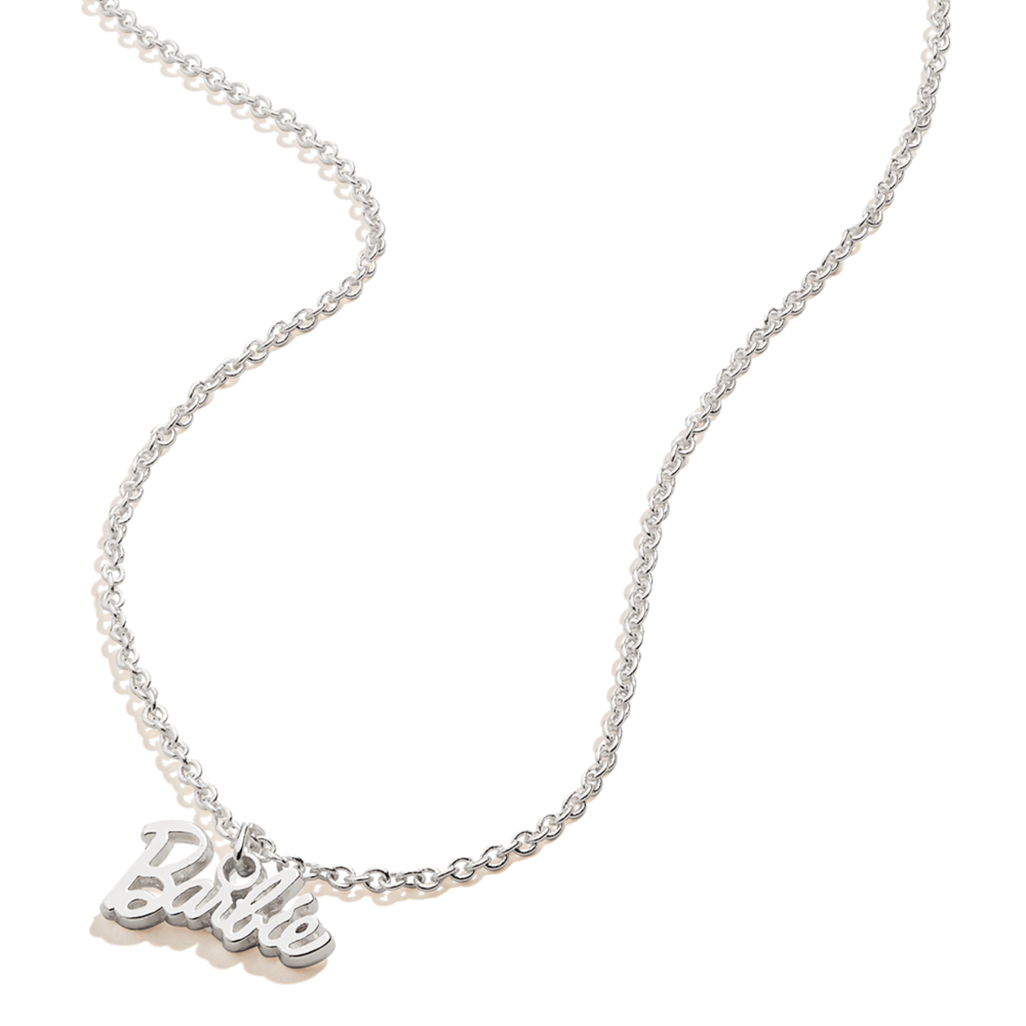 Since 1959. Barbie has been inspiring girls to be anything. From princess to president. astronaut to zoologist. there isn’t a plastic ceiling Barbie; hasn’t broken! Today. with over 200 careers and counting. she continues to inspire the limitless potential in every girl. We’re thrilled to collaborate on a capsule collection with ALEX AND ANI to celebrate Barbie doll’s 60th anniversary. which includes this Barbie Name Plate 18-inch Adjustable Necklace. in a shiny silver finish. featuring a Barbie logo charm. Wear it and celebrate the power of possibility!