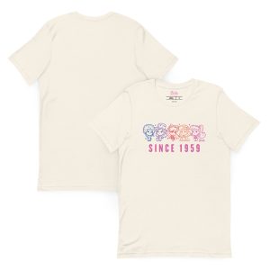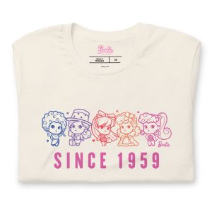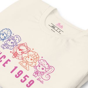 This Barbie 1959 Cutie Cream T-Shirt is everything you’ve dreamed of and more. It feels soft and lightweight. with the right amount of stretch. It’s comfortable and flattering for all. This exclusive Barbie design is only available through Mattel Creations.