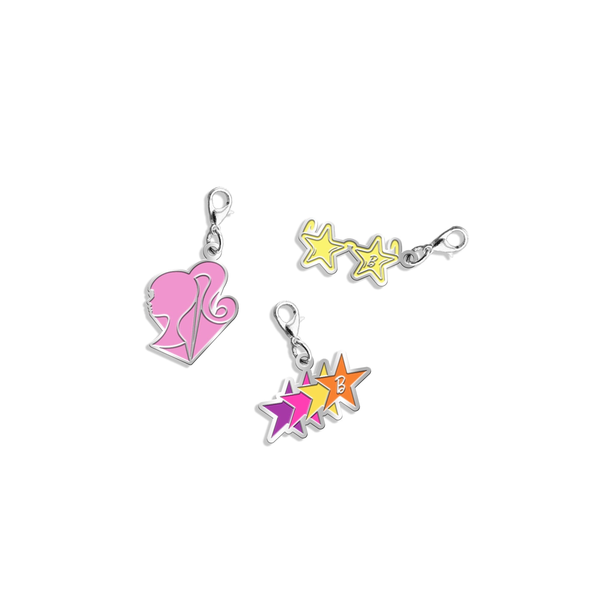 - Set of 3 charms featuring Barbie icons from the 1970s