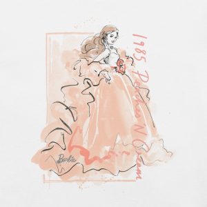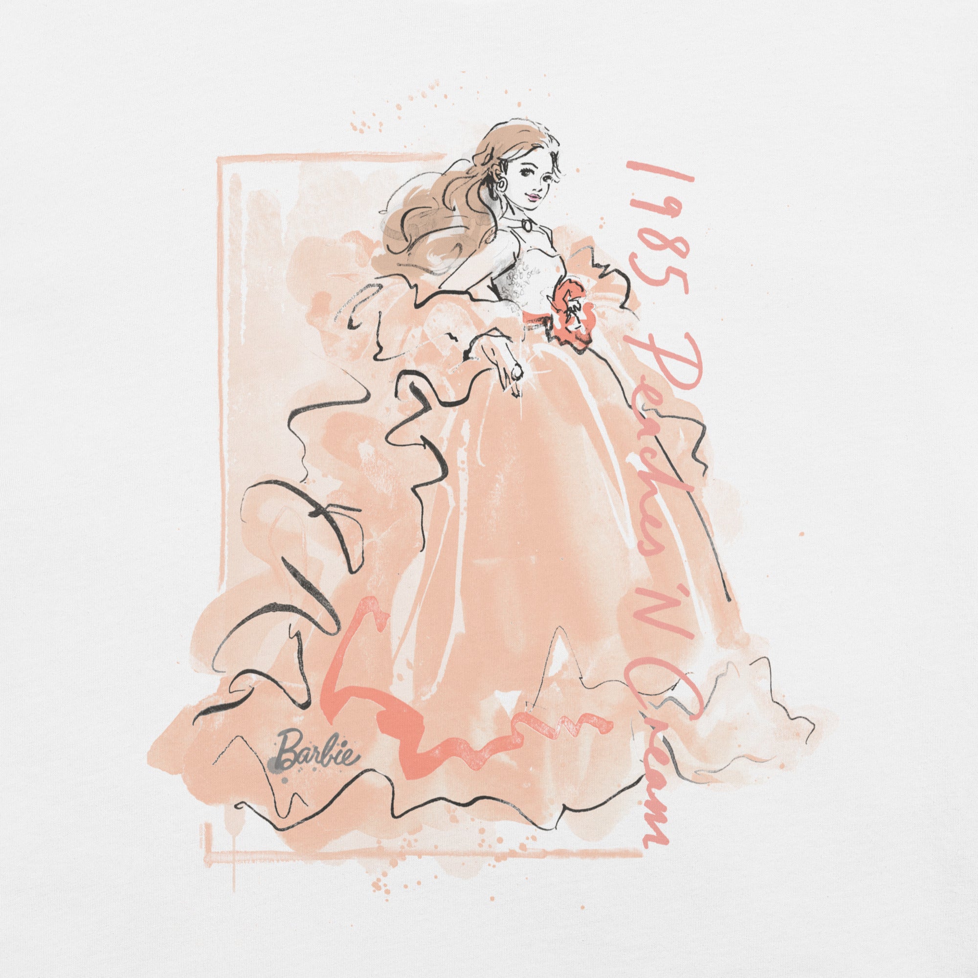 This Barbie Peaches ‘n Cream White T-Shirt is everything you’ve dreamed of and more. It feels soft and lightweight. with the right amount of stretch. It’s comfortable and flattering for all. This exclusive Barbie design is only available through Mattel Creations.