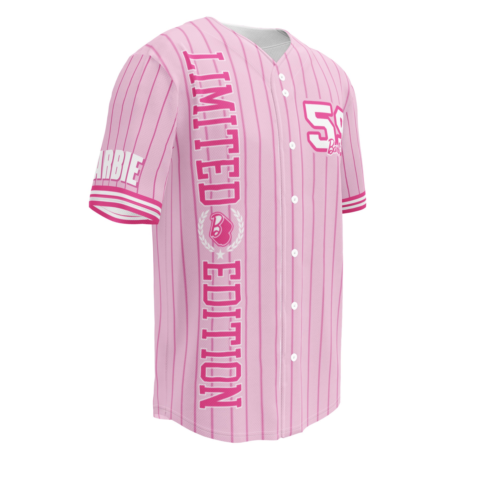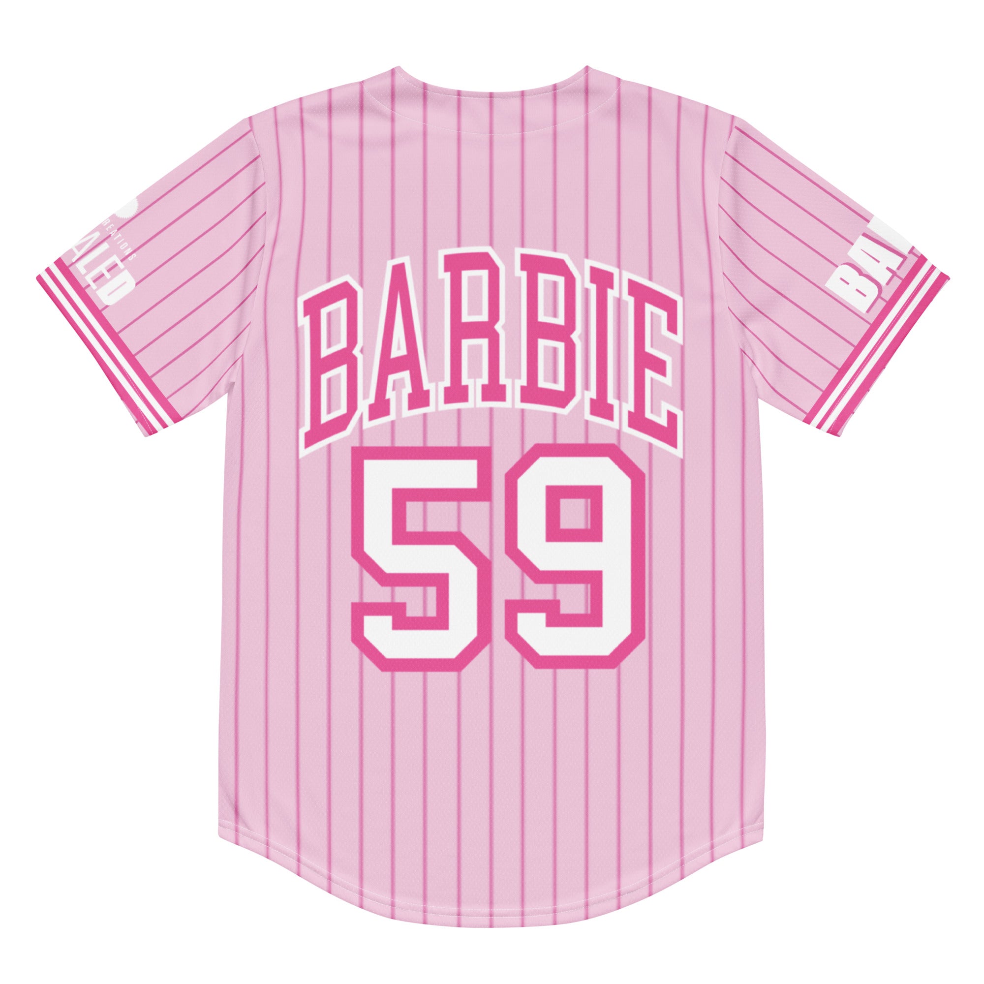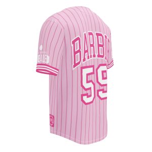 Step up your game with this classic Barbie Pink Striped Baseball Jersey. It’s made from recycled fabric and features moisture-wicking fabric for all-day comfort. This exclusive Barbie design is only available through Mattel Creations.