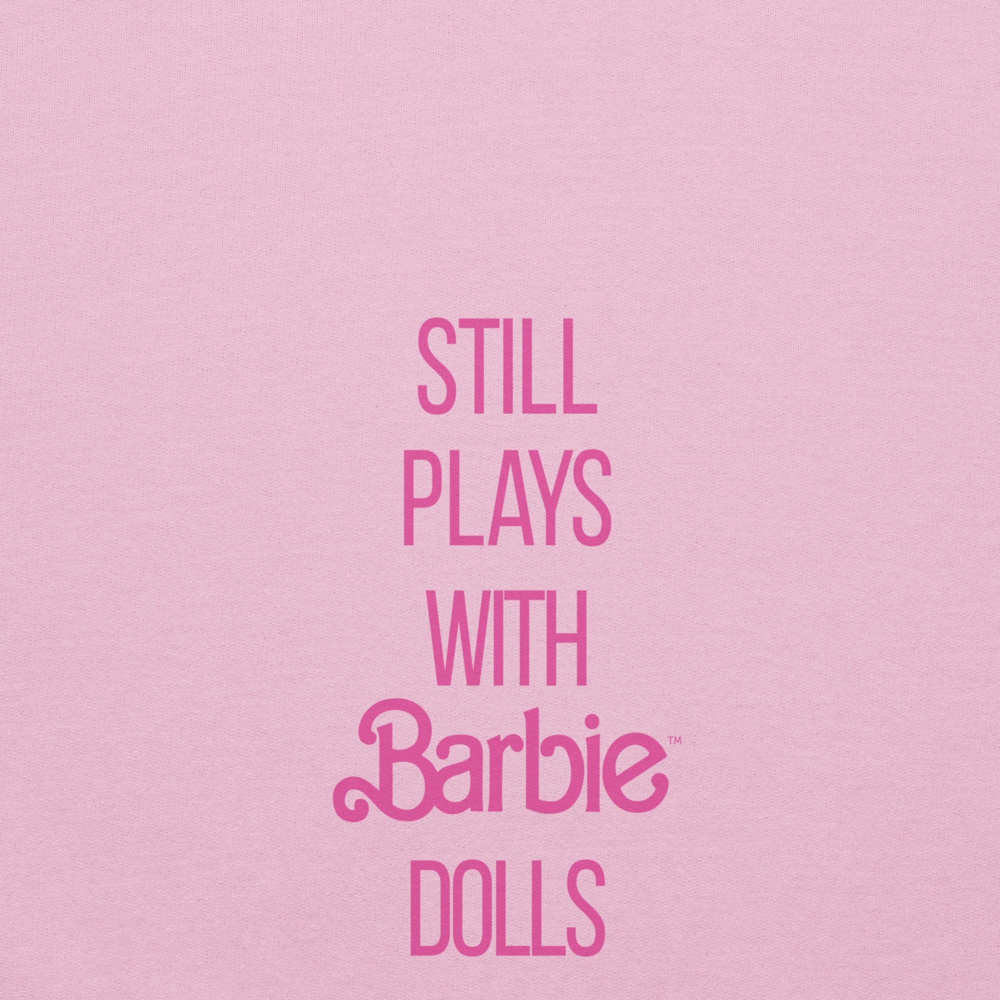 This pre-shrunk. classic fit Barbie Still Plays with Barbie Dolls Pink Sweatshirt is made with air-jet spun yarn for a soft feel. This exclusive Barbie design is only available through Mattel Creations.