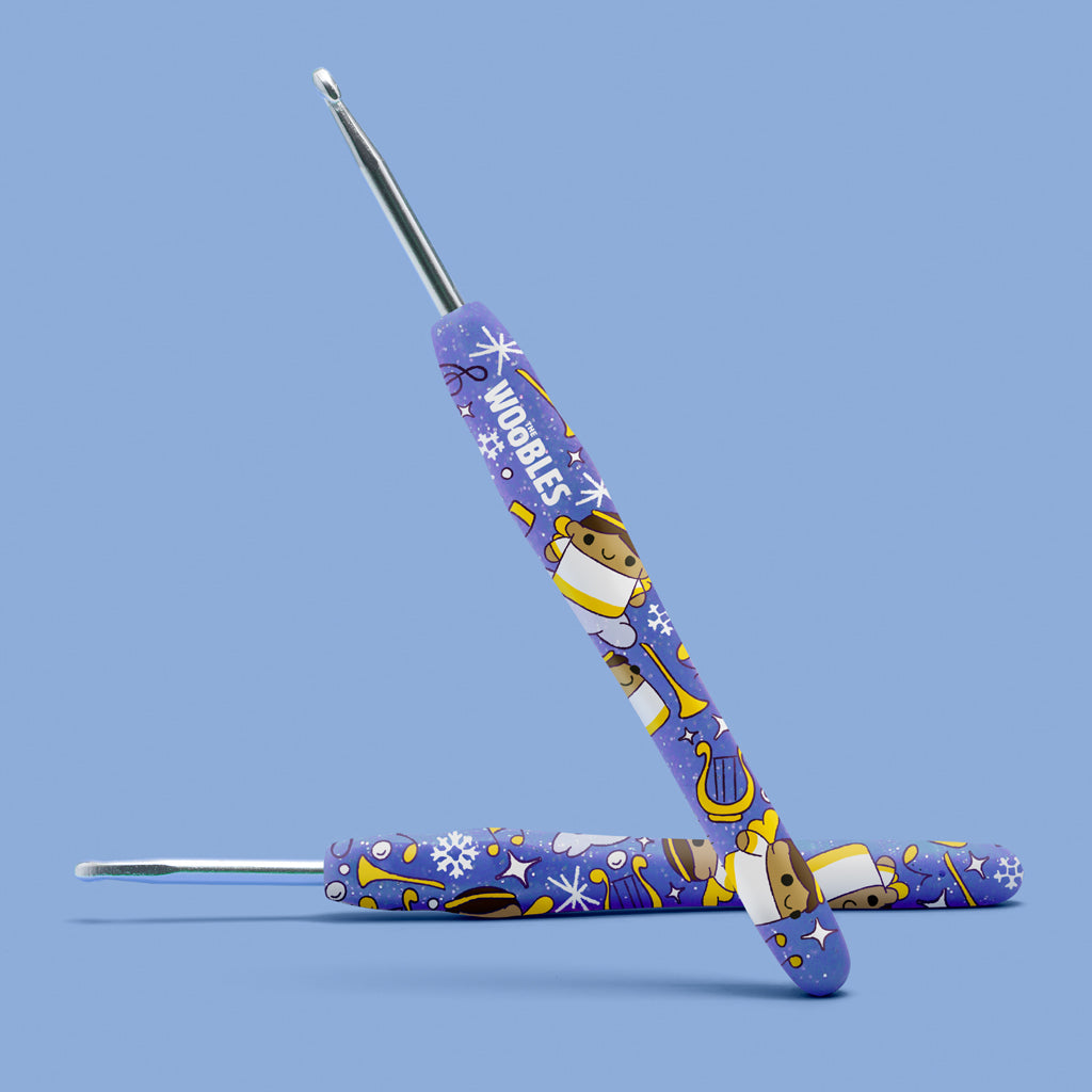 Cue the harps and polish your halo. ’cause Claire the Angel has descended into the Woobleverse! Blessed with plenty of glitter yarn and a glittery custom hook. this friend’s sweet smile will make you feel downright divine.