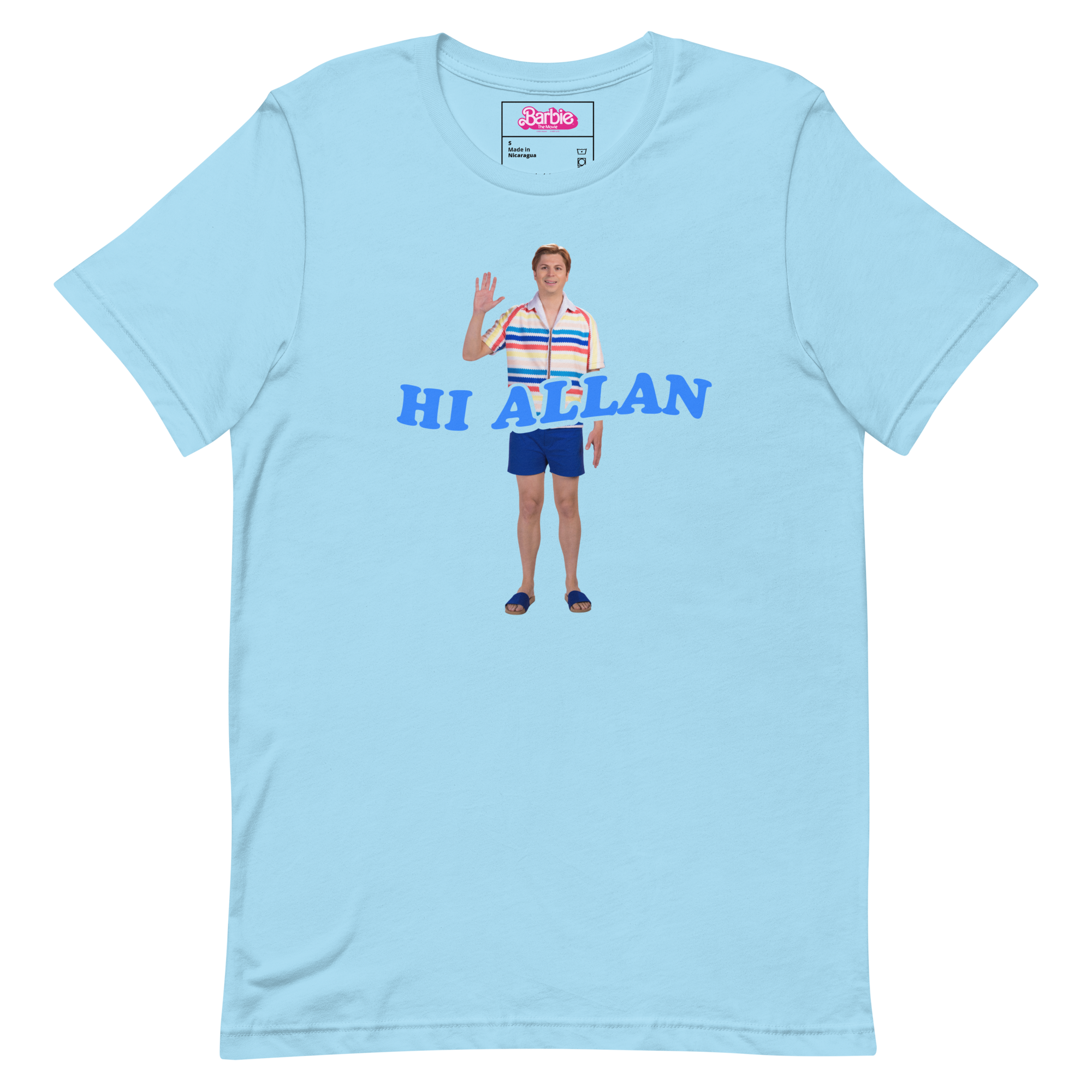 Allan. as he appears in Barbie The Movie. waves hello on our soft and light T-shirt. With just the right amount of stretch. it’s comfortable and flattering for all. Get this shirt for yourself or your favorite Allan fan and celebrate the release of the new movie.