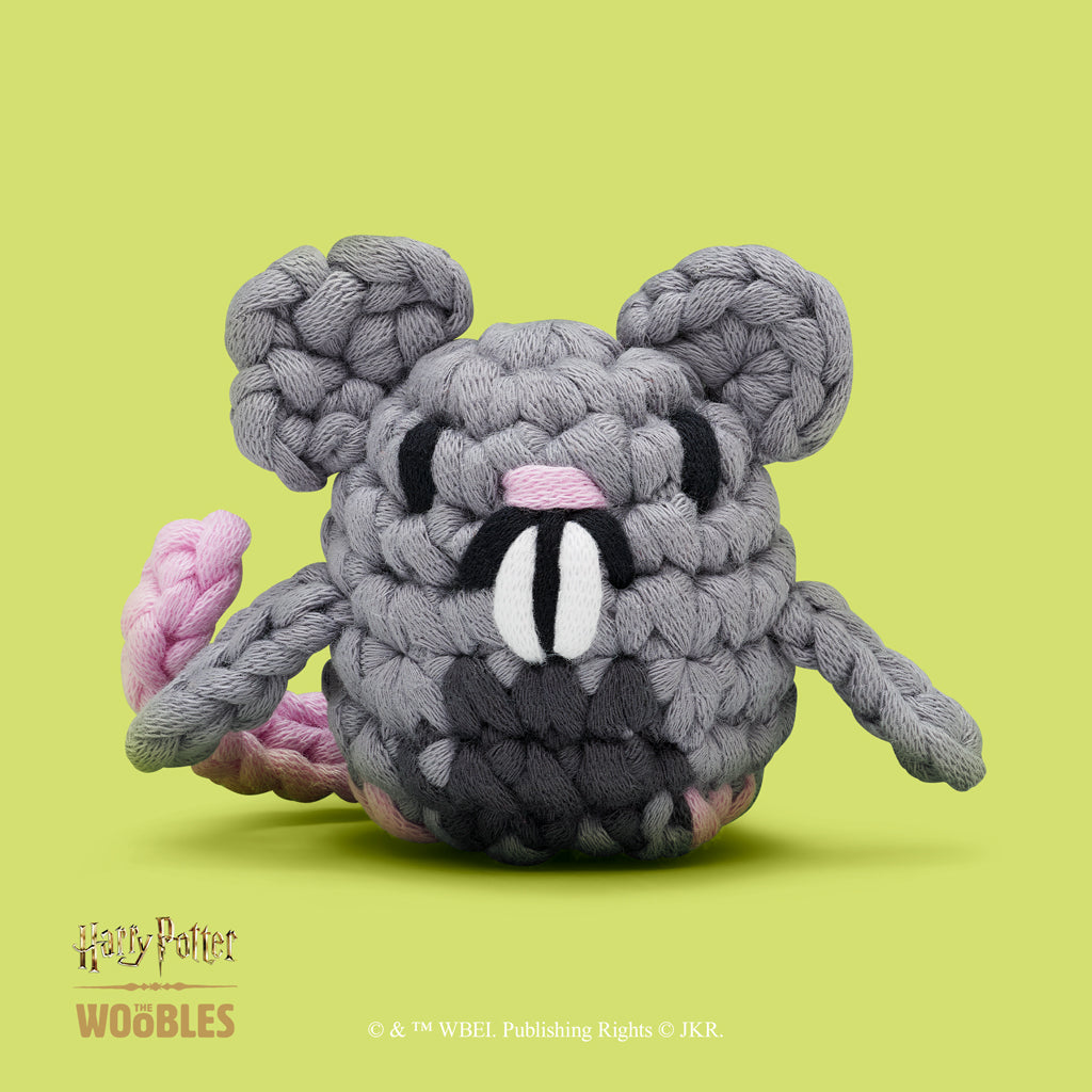 You’ll get to bring Hermione and Ron-derful Ron to life. as well as summoning a stag-geringly adorable glow-in-the-dark Stag Patronus. Since all the accessories are designed for beginners. you’ll also be able to hop right in with the Chocolate Frog™ (which comes with one of four spellbinding mystery cards) and purr-fect Crookshanks™. scurry past any snags with Scabbers™ and the marvelous Mandrake. sweep past the competition with the Nimbus 2000™. and score big with the Golden Snitch™. Last but not least. you’ll soar to Intermediate-level heights with brilliant Buckbeak™. Our step-by-step videos will provide all the train-ing you need. while our Easy Peasy Yarn™ will help Weasle-y your way past any tricky tangles.