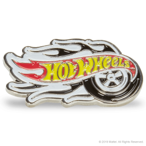 With the HOT WHEELS logo in red and yellow on a classic wheel. it also features flames in black and white. The sturdy metal backing and shiny finish make this a pin you’ll want wear wherever you go!