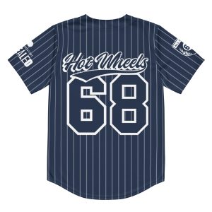 Step up your game with this classic Hot Wheels Navy Striped Baseball Jersey. It’s made from recycled fabric and features moisture-wicking fabric for all-day comfort. This exclusive Hot Wheels design is only available through Mattel Creations.
