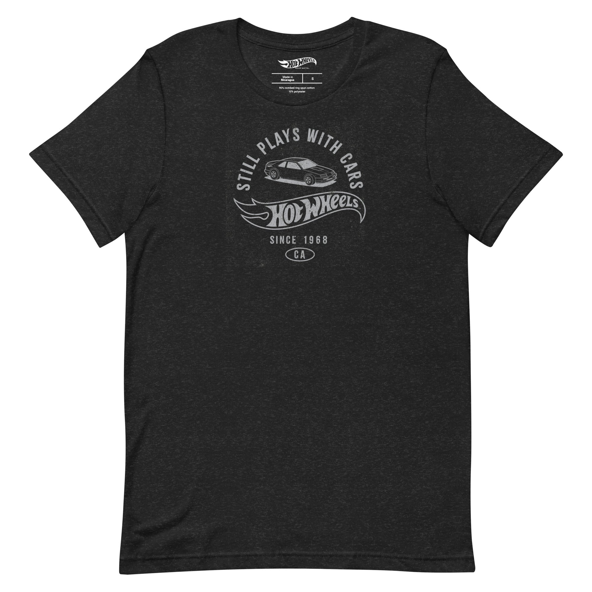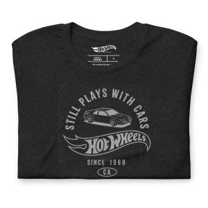 This Hot Wheels Still Plays with Hot Wheels Cars Black T-Shirt is everything you’ve dreamed of and more. It feels soft and lightweight. with the right amount of stretch. It’s comfortable and flattering for all. This exclusive Hot Wheels design is only available through Mattel Creations.