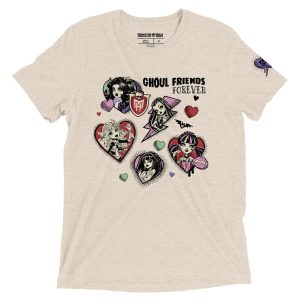 The tri-blend fabric of this Monster High Ghoul Friends Forever Unisex T-Shirt creates a vintage. fitted look. And extreme durability makes this t-shirt withstand repeated washings and still remain super comfortable.