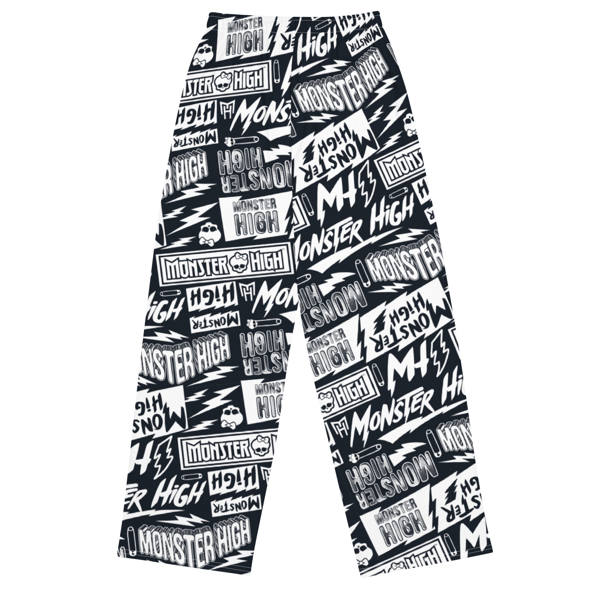 Get the comfort of pajamas in this stylish pair of Monster High Logo Unisex Wide Leg Pants. With the adjustable waist and stretchy fabric. it’s like your favorite sweatpants. but better.