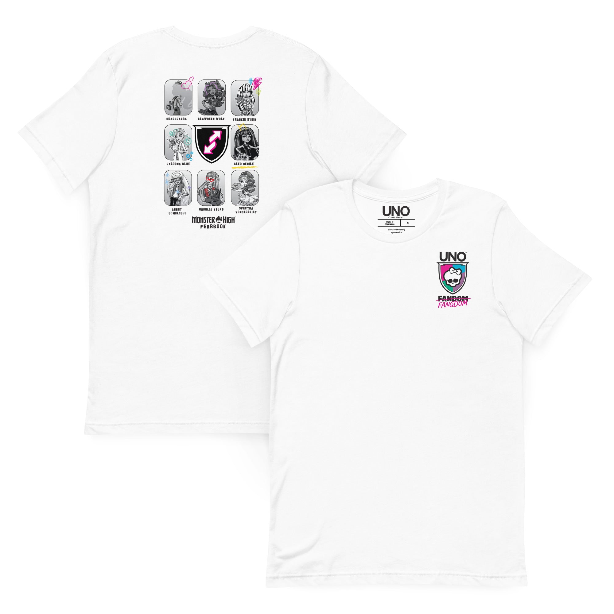 This UNO Monster High Fearbook White T-Shirt is everything you’ve dreamed of and more. It feels soft and lightweight. with the right amount of stretch. It’s comfortable and flattering for all. This exclusive UNO design is only available through Mattel Creations.